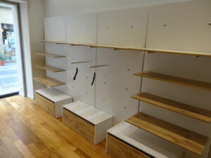 - L’éclairage a été entièrement rénové en LED : éclairage plafond avec spots directionnels et éclairages étagères et vitrine
